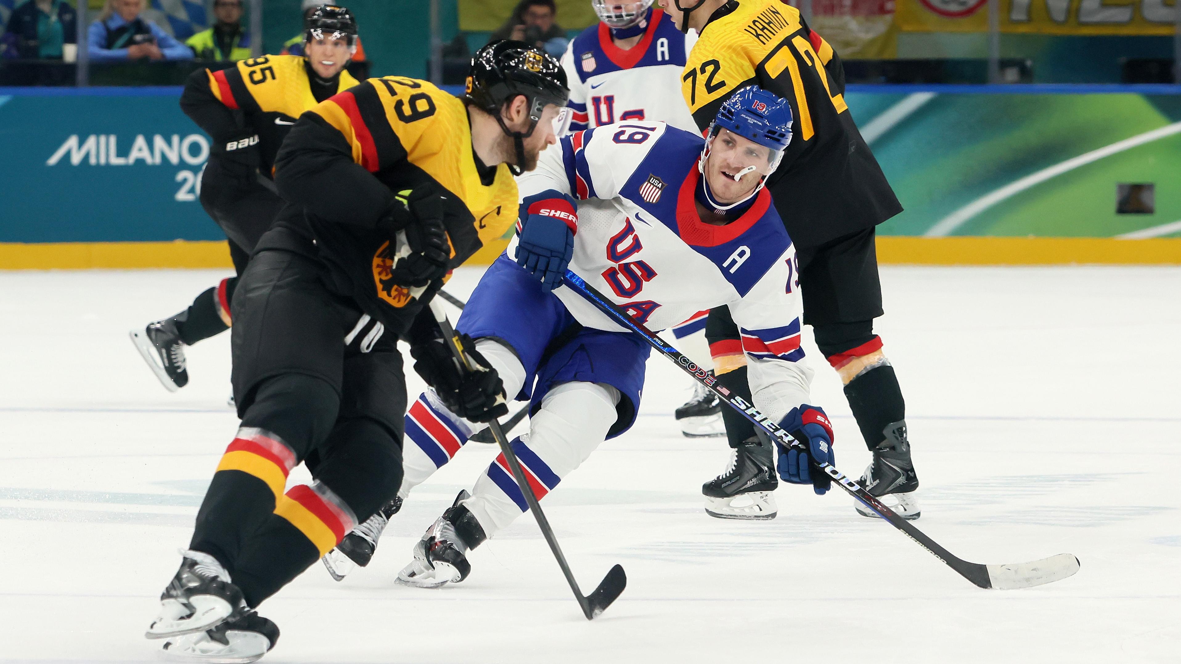 Звезда Флорида Пантерса Метју Ткачук нашао се у познатој позицији током победе америчког тима од 5-1 над Немачком на Зимским олимпијским играма у Милану Кортини 2026.