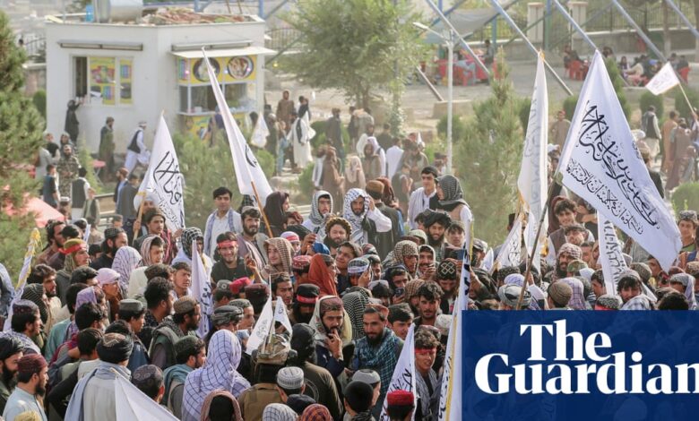 Хиљаде мушкараца окупило се у петак у петак да ће гледати цвеће раштркане од хеликоптера да обележе четврту годишњицу повратка Талибана на власт – прославу да су жене забране похађање.