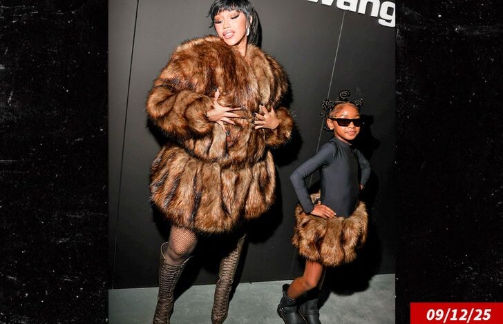 ЦАРДИ Б и кћерка Култура хаљина у крзна за догађај Нев Иорк Модхенед
