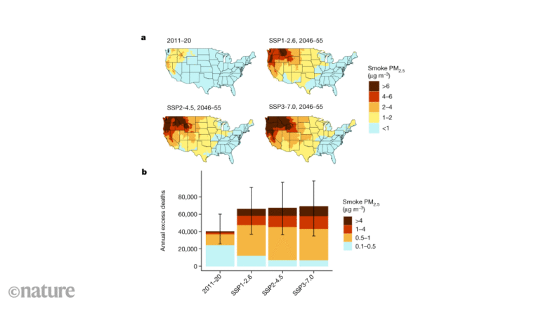 У Сједињеним Државама расте загађење од дима од шумских пожара. Предвиђа се да ће климатске промене погоршати проблем, што ће довести до 70.000 превремених смрти сваке године до 2050. Ако се не предузму додатне мере, дим од шумских пожара могао би постати једна од најгорих климатских катастрофа у земљи.