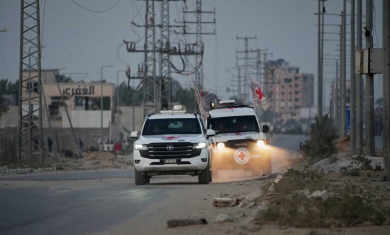 Возила Црвеног крста са телима људи за које се верује да су покојни таоци које је Хамас предао крећу ка граничном прелазу Кисуфим са Израелом, да би у четвртак били пребачени израелским властима у Деир ал-Балах, централни појас Газе.