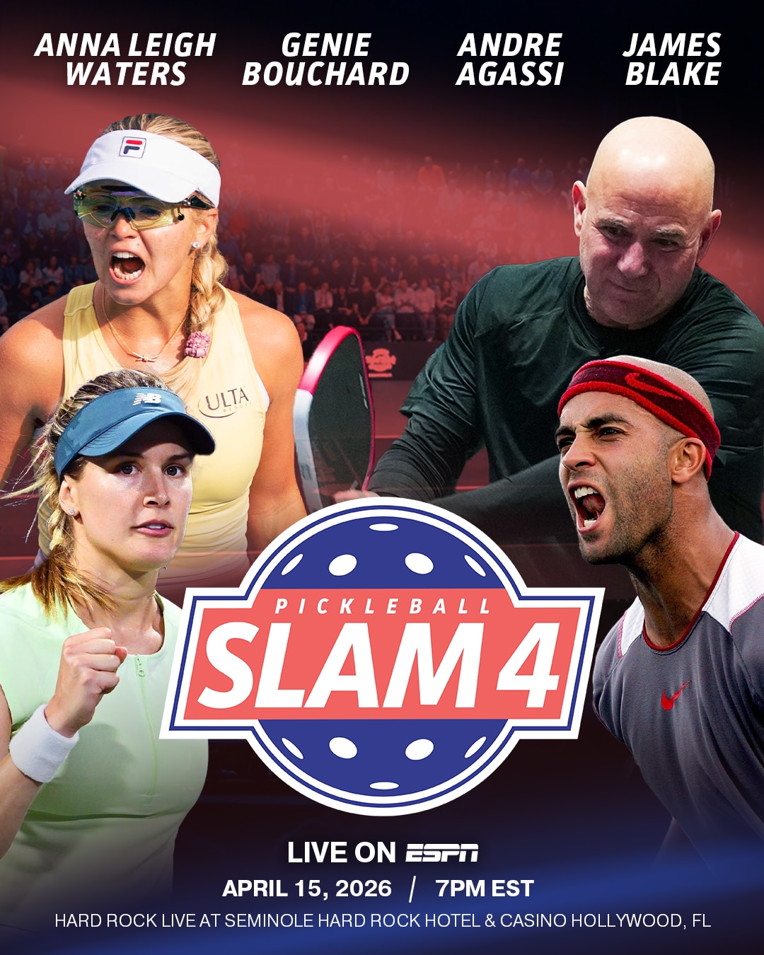 Пиклбол слем се враћа и на њему ће се наћи Андре Агаси и Џејмс Блејк који ће се суочити са Пиклбол професионалцима Аном Ли Вотерс и Јуџин Бушар. Вотерс је рангирана као број 1 на свету, док је Бушар, која је и сама бивша тенисерка, рангирана као број 10 на турнеји Профессионал Пицклебалл Ассоциатион Тоур за жене појединачно.