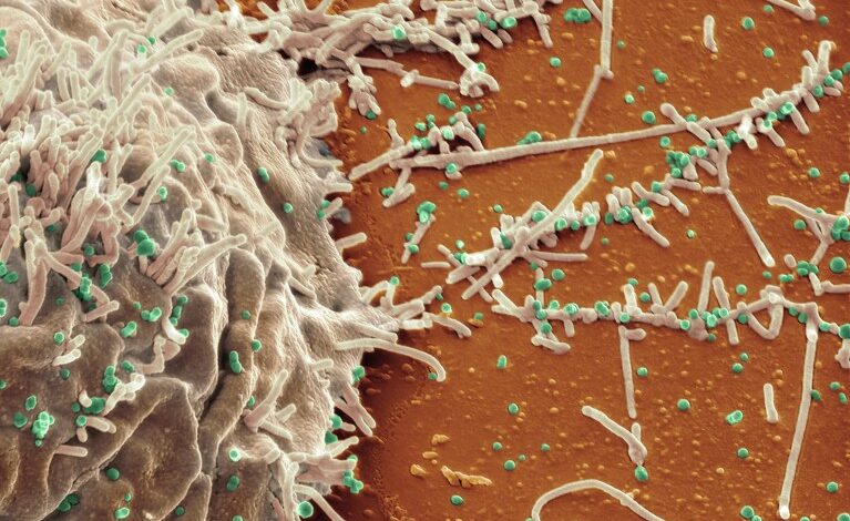 Будуће терапије антителима могле би да циљају вирус птичјег грипа Х5Н1 (зелено).Заслуге: Стеве Гсцхмеисснер/Сциенце Пхото Либрари