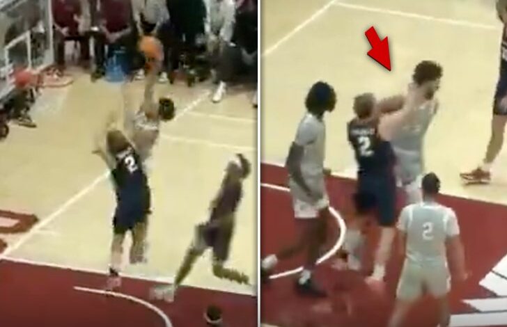 Кошаркаш са колеџа је брутално постављен усред утакмице у среду… и очигледно је одлучио да се изједначи тако што је ударио противника у лудој сцени.