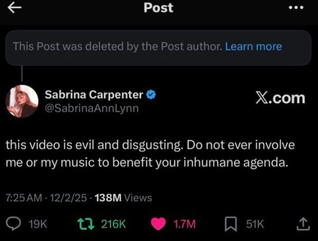 Раније током дана, корисници друштвених мрежа накратко су помислили да је Карпентерова убедила Белу кућу да престане да користи њену слику након што је први снимак оценила као „зло и одвратно“.