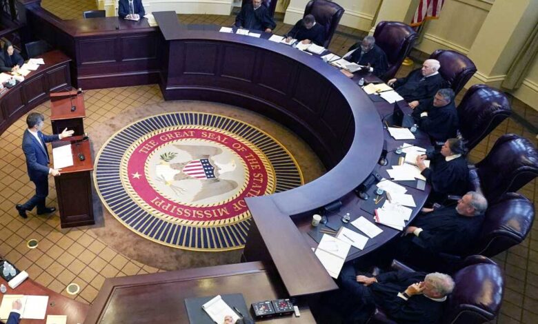 Судије Врховног суда Мисисипија слушају аргументе у Џексону, Мис., 6. јула 2023. У петак је судија наредио ванредне изборе за суд након што је раније утврдио да изборна мапа која се користи за одабир судија крши Закон о гласачким правима.
