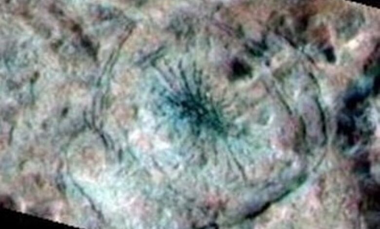 Истраживачи су раније овог месеца рекли да је чудна формација вероватно настала од сланих вода – слане воде – која је избила на површину услед удара који је створио кратер. И док овај паук, наравно, није стварни облик живота, могао би да пружи вредне трагове о подземним условима унутар ледене коре, укључујући језера или друге џепове течне воде.