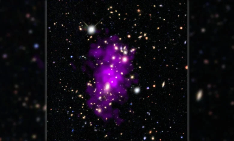 Уђите у Нову годину са „Цхампагне Цлустер“, удаљеним јатом галаксија приказаним на новој слици која комбинује податке НАСА-ине рендгенске опсерваторије Цхандра и оптичких телескопа.