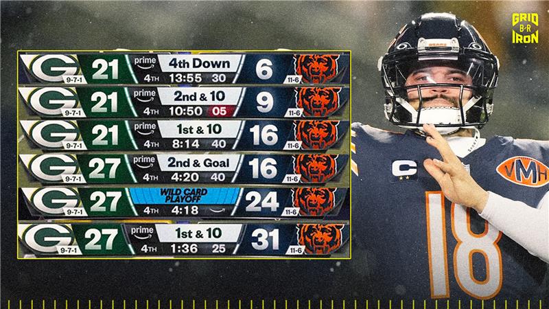 Квотербек Медведа је у првој и трећој четвртини убацио прилике за четврту лопту, што је означило његову прву игру са више пресретања од 3. недеље кампање 2024. године.
